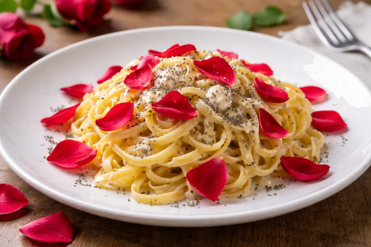 I tagliolini ai petali di rose rosse sono una ricetta semplice ma sorprendente, che trasforma un ingrediente delicato come i petali di rosa in un condimento aromatico e inaspettato. Se avete un giardino o un balcone con rose fiorite, questa è una delle occasioni per utilizzare i petali in cucina, ma ricordatevi di usare solo rose non trattate con pesticidi, per garantirne la sicurezza alimentare.
